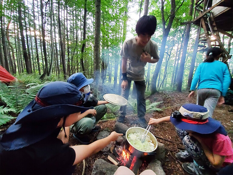 サバイバル体験の舞台は、電気もガスも水道もない北アルプスの森